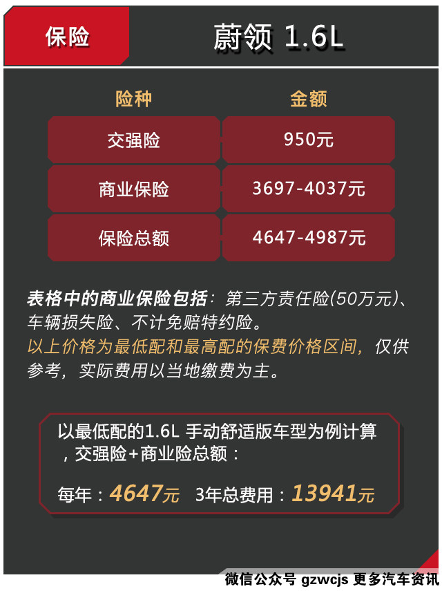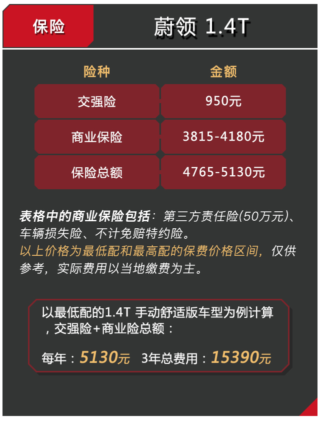 至于保险,首年5K出头的费用其实并不贵了,只要开车遵守规则,减少出险的话,保费就会越来越便宜了,另外提醒一下的是:第三者责任险建议买100万,特别是在大城市的道路里,各种奔驰宝马满街跑,各种加塞抢道,意外很难避免,买个100万的第三者,开在路上也更加放心。