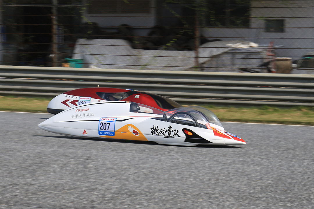 由于驾驶舱的空间设计得很小,所以这种节能车基本上只能由身材娇小的女生担任驾驶员。在燃油组别比赛前期,广汽本田挑战壹队和挑战贰队两个队伍不断地在技术和造型方面创新,挑战壹队采用了一体成型车架,减少了碳纤维车体中胶水的应用,使得车辆重量降低了50%左右;挑战贰队自主编程研发ECU,让车辆的操作更加便捷和流畅。