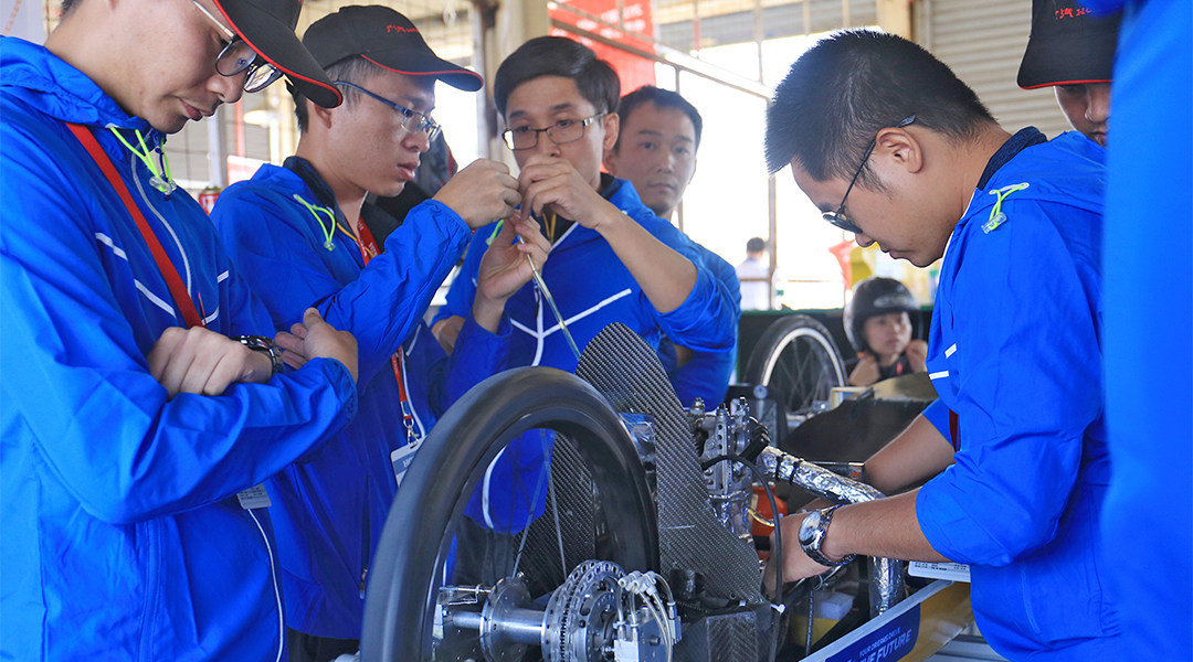 至于电动组的梦想EV1队和梦想EV2队,也在为着冠军的梦想而努力着,今年梦想EV1车队采用了日本专为节能开发的电机,以实现减少电机输出的电流来达到节能效果。梦想2车队也对ECU控制系统进行重新开发,并在传动系统上加入离合器机构。