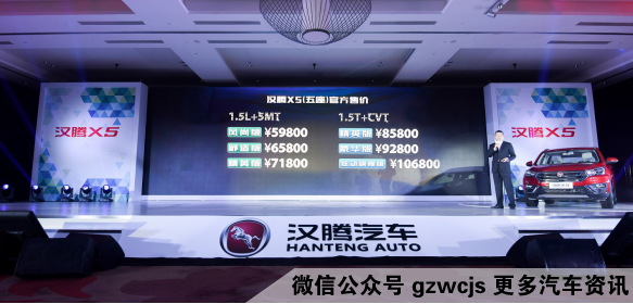 “新生代品智SUV” 汉腾X5(五座)官方售价: