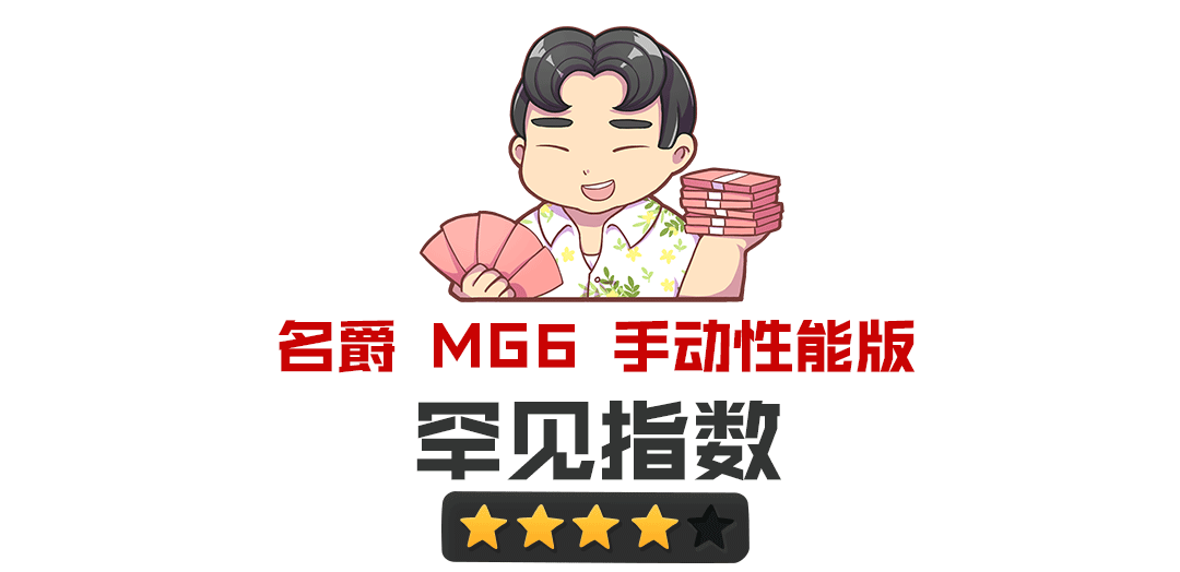 MG6性能版搭载的1.5T发动机最大马力190Ps、峰值扭矩300N·m,传动方面由6MT完成,1挡进2挡稍显生涩,据实测,0-100km/h能跑到6秒多,着实厉害。18英寸普利司通搏天族T005轮胎、四活塞卡钳刹车配以浮动式刹车盘、定制短弹簧,符合性能车定位。美中不足的是,选用隐藏式排气布局。