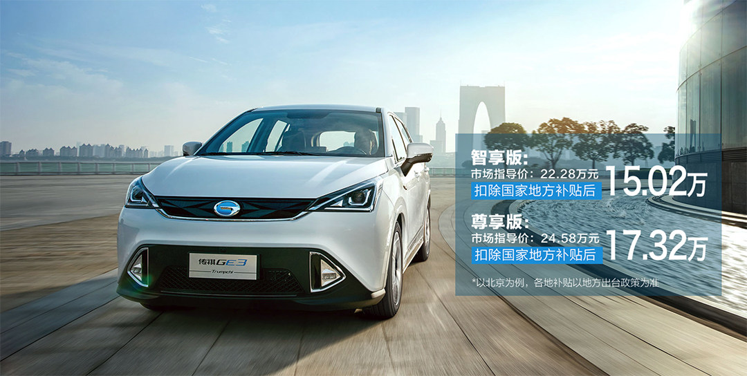 传祺GE3由广汽研究院副院长、概念与造型设计中心主任张帆领衔的设计团队打造,采用LowPoly风格设计,整体灵动俏皮很有现代感。车身尺寸为4346*1825*1637mm、轴距2560mm的它虽然看着不大,但通过全新的纯电专属技术平台,则有着同级领先的空间表现,甚至能够放下大尺寸的备胎,这点是目前许多同级产品所不具备的。GE3搭载的电机可输出290N·m峰值扭矩、最大功率132kW(180匹),百公里加速9.3秒;采用三元锂离子电池供电,综合工况纯电续航里程超过310km,60km/h匀速续航里程可达475km。充电时间方面,交流慢充充满需要8小时,直流快充半小时电量则可达80%。