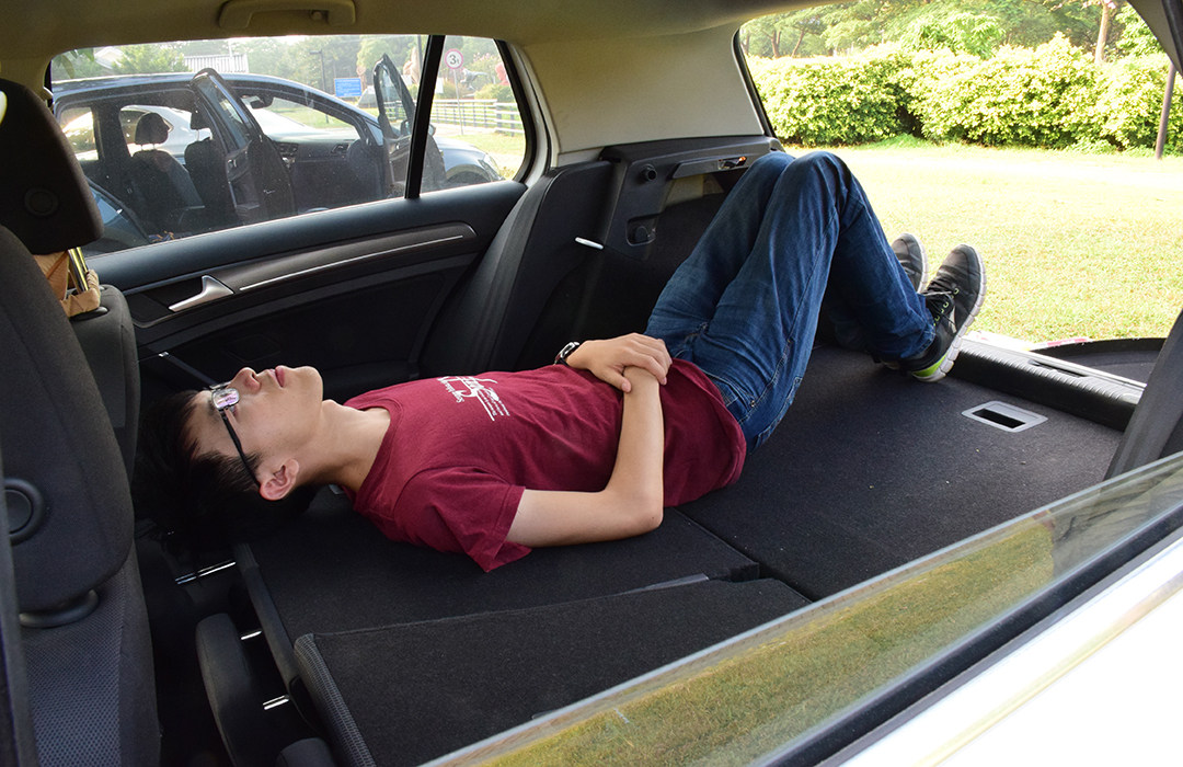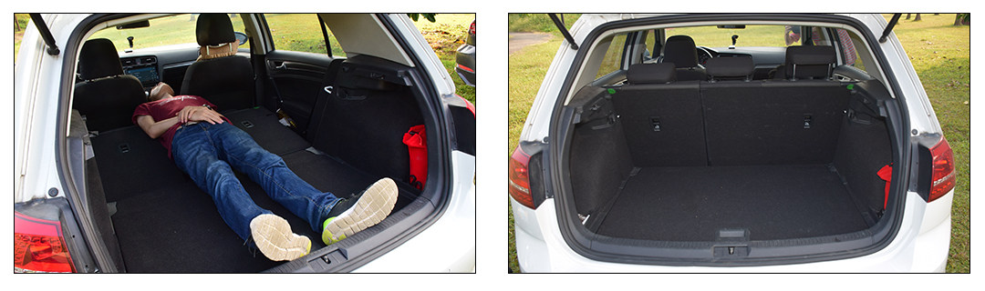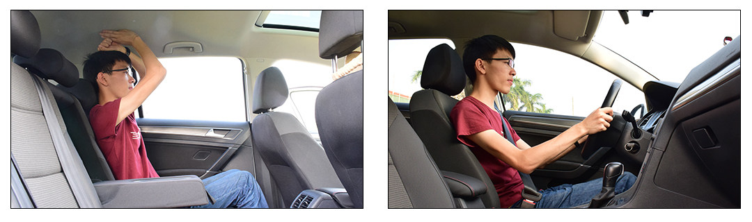 高尔夫最能打动人的一点莫过于车内的空间和乘坐的舒适性,这也是敢和那些三厢家用车抗衡的地方,虽然在尺寸方面高尔夫相比同级别的昂克赛拉两厢、福克斯两厢并不占优势,但是车内的空间表现却十分出色,尤其是横向空间比较宽敞,再加上车内平直的线条、较大面积的天窗都给高尔夫营造了不错的空间感,而实际上172cm的体验者坐在车内,前排头部空间能够达到一拳以上,后排头部空间一拳三指,腿部空间两拳两指,这样的空间表现已经丝毫不逊色于同级别任何对手,这也是高尔夫的优势所在;当然,高尔夫销量能够超越一众三厢车的地方则在于它的行李箱空间达到了380L,并且拓展性也很好,放倒后排座椅之后行李箱能形成一个较平的地台,在车上躺着睡一觉也勉强能够满足要求,这也是相比较三厢车更加灵活的一方面。