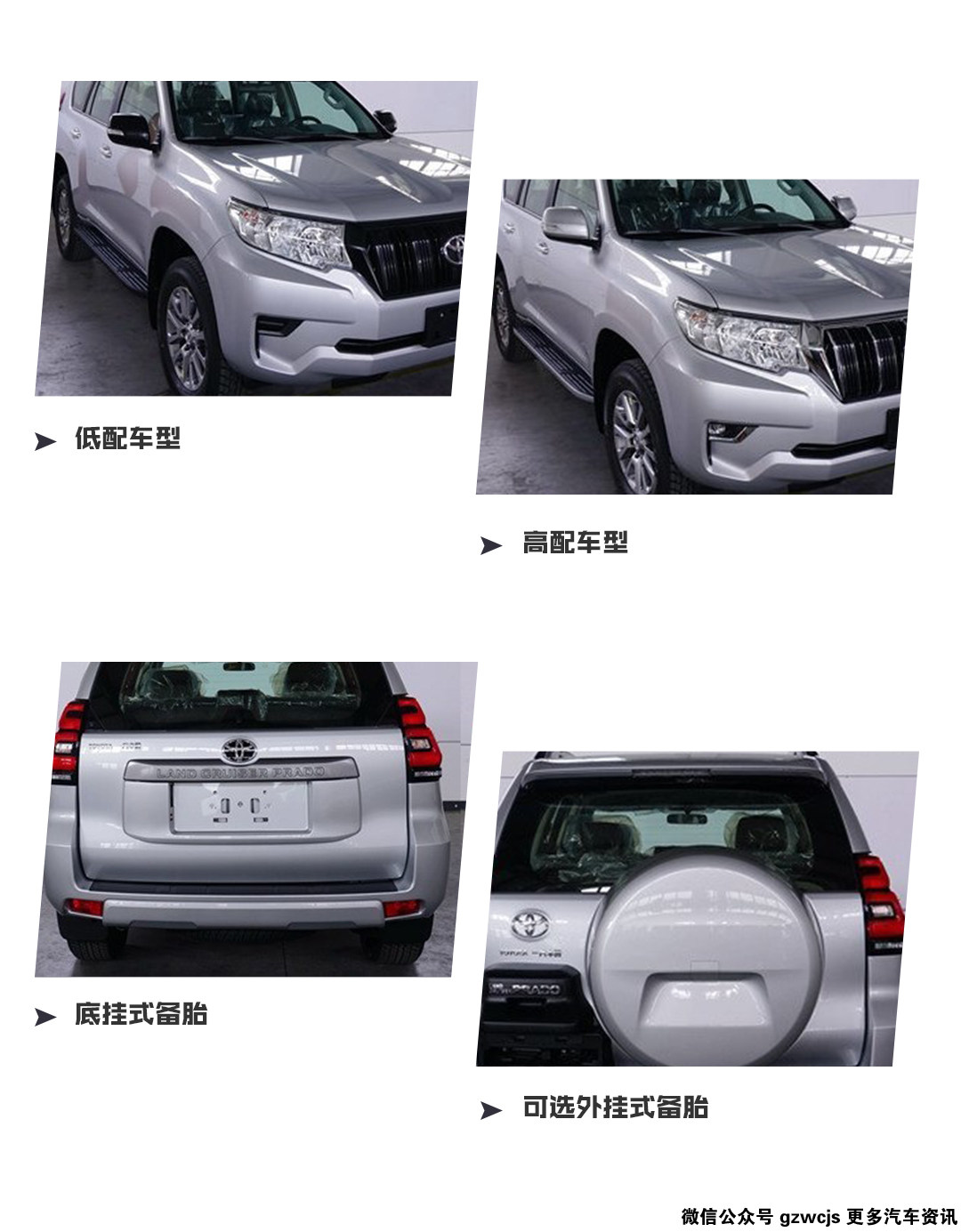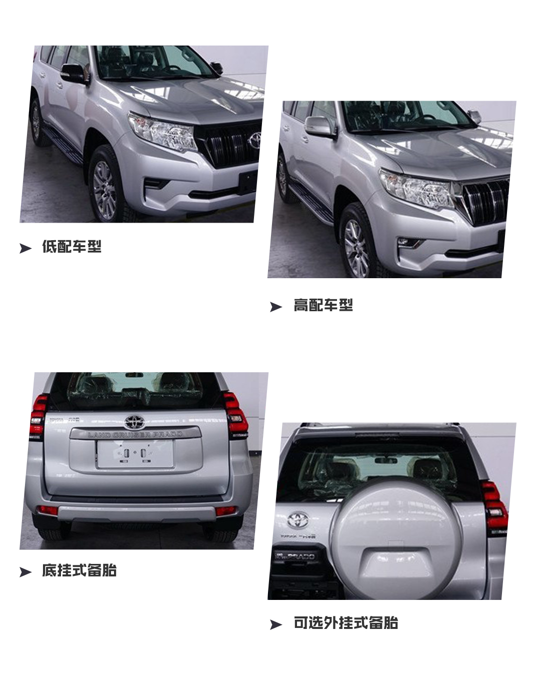 新车外观方面的变化还是十分明显的且高低配之间也有显著区别。新车对前脸的进气格栅、大灯和前保险杠都进行了重新设计,相比老款的简单硬派,新款造型有了更多的动感线条和设计感。低配区别于高配还在前格栅与后视镜部分采用全黑的喷涂,且低配版本中雾灯被取消。值得一提的是尾部造型方面新车提供外挂式备胎可选,整体长宽高分别为4840(带外挂备胎5010)/1885/1890mm,轴距2790mm。配置上新车标配7座布局,四驱系统由全时四驱换为分时四驱,并增加全景影像、8英寸液晶显示屏、LED远光灯、LED雾灯、座椅通风、胎压监测等配置。动力方面新车将搭载3.5L的V6发动机,匹配6速手自一体变速箱。