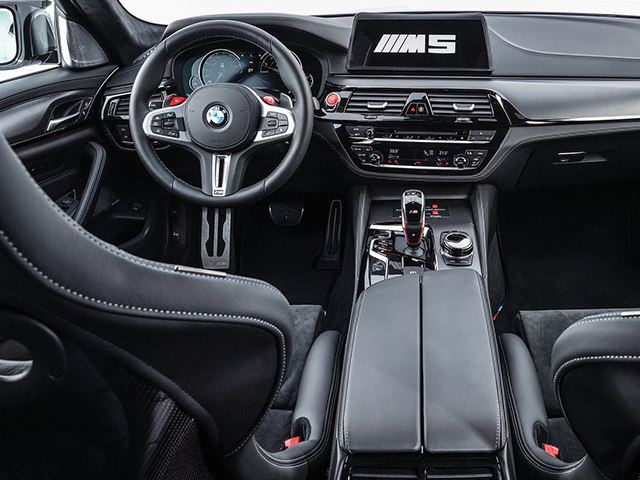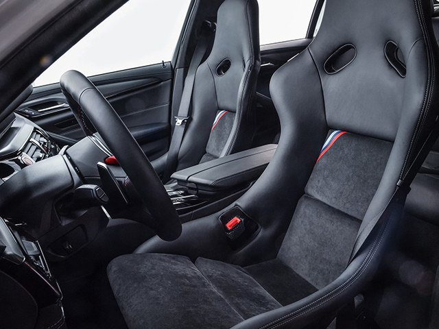 毕竟这辆M5只是作为一辆安全车,所以在内饰方面跟普通的M5并没有什么太大的区别,同样是黑色的内饰配色,辅以白色的缝线作为点缀,只是在运动感的营造上,较红色缝线而言会差上几分。虽然安全带并没有采用赛车专用的五点式安全带,但是吊桶式座椅已经大大的保证了乘客在赛道上的舒适和最大的安全。