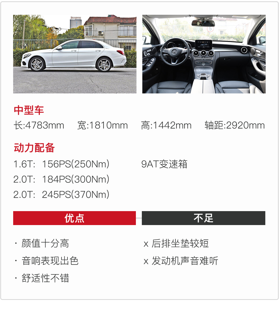 当然,入门级的豪华品牌轿车也不是盖的,比如说奔驰C级。奔驰向来在舒适性方面有非常高的造诣,120km/h的噪音数值才为63分贝,这种降噪能力是奔驰立足豪华车领域的资本之一。
