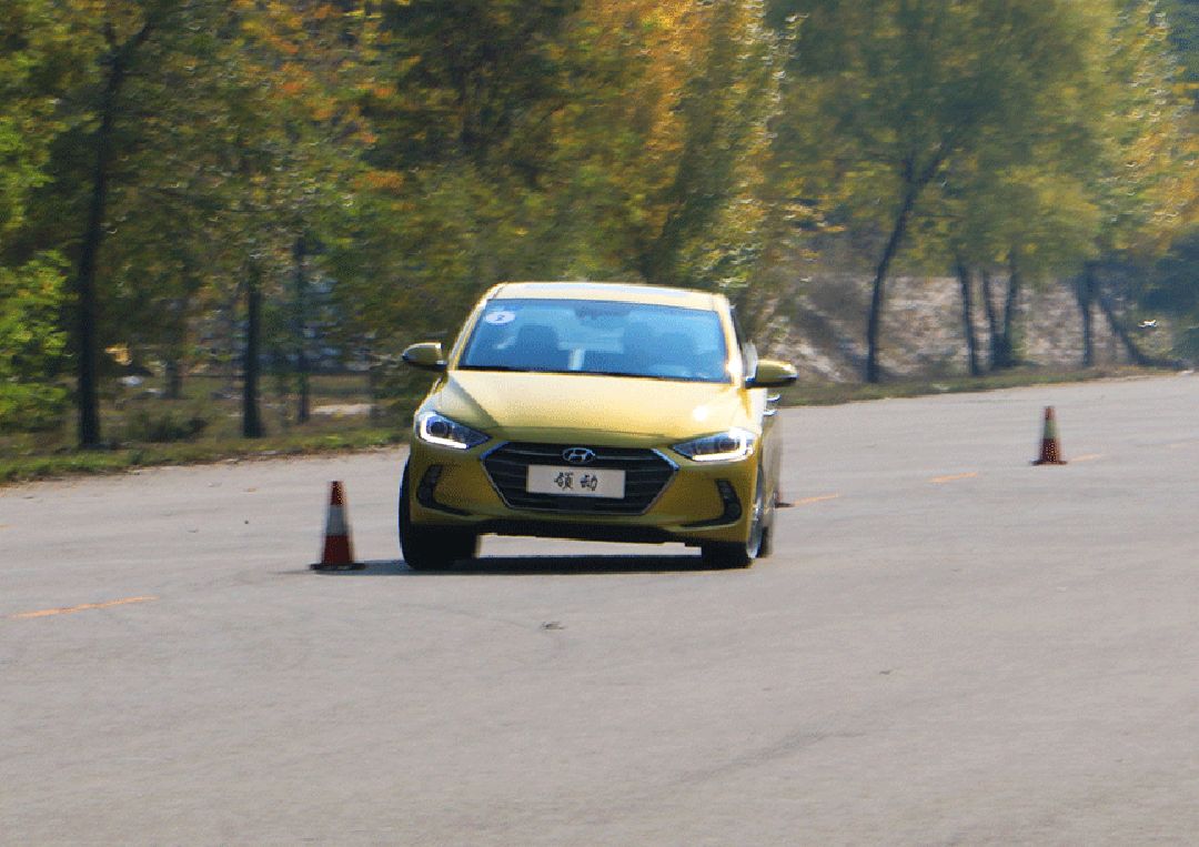 短弹簧营造出低离地间隙的动感外观之余,还赋予领动出众的操控基因,车头指向灵活,车尾循迹性良好,满满的驾驶乐趣,轻松完成绕桩测试。
