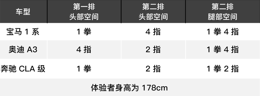 宝马1系、奥迪A3、奔驰CLA级都是紧凑型车,那么它们的空间到底能不能满足家用需求呢?我们来看一下实际乘坐空间感受: