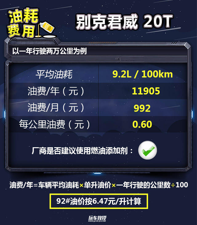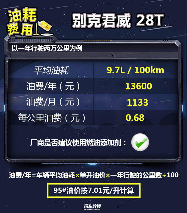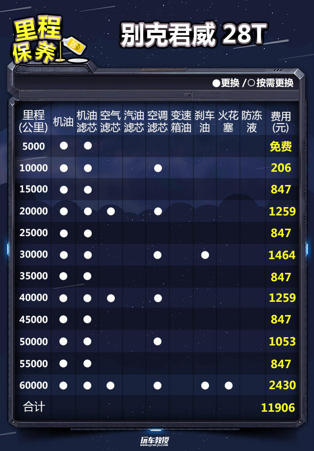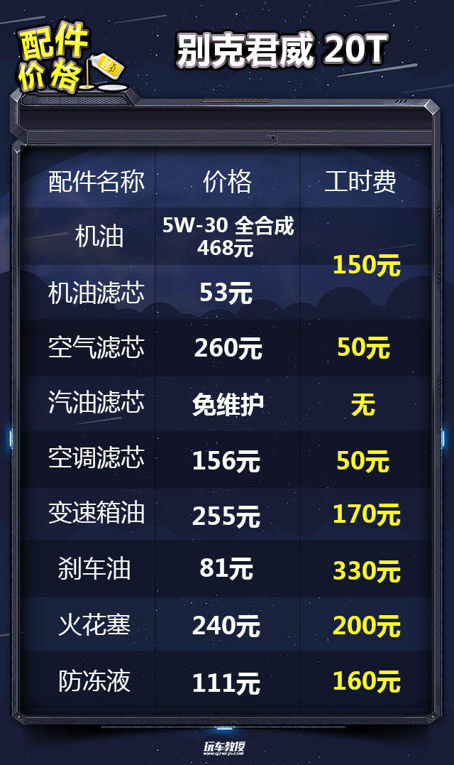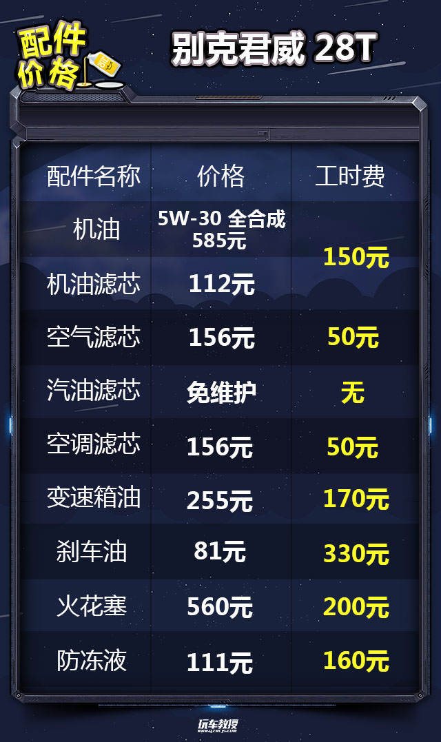教授总结:全新君威20T和28T车型小保养价格分别是671元和847元,厂商建议使用燃油添加剂,价格为78元/支,如果添加后,每次保养的费用都会增加78元。6万公里的保养总费用分别是10138元和11906元,这个费用与1.8T/2.0T的迈腾(11296元)、阿特兹(9960元/10917元)相接近。20T车型年花销24095元,月花销2008元;28T车型年花销26852元,月花销2238元,属于中型车合理的养车费用范围。