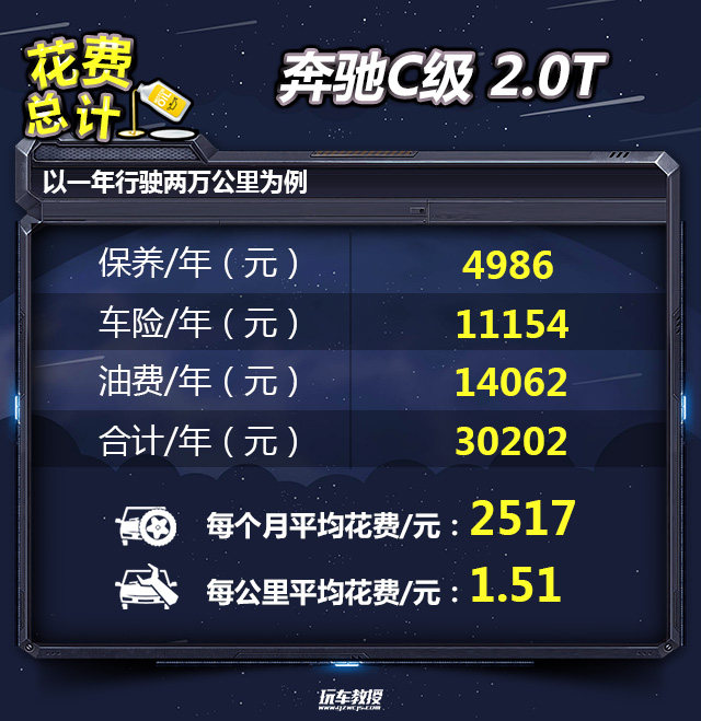 教授总结:从保养分析结果来看,奔驰C级的小保养费用为958元,三年6万公里的保养共需要14959元,保养费用相对宝马3系和奥迪A4L来说要稍高。以关注度最高的改款 C 200 运动版为例,一年两万公里的保养费用为4986元,用车费用为30202元,平均每月的花费为2517元。和同级别车型相比,用车费用较高。