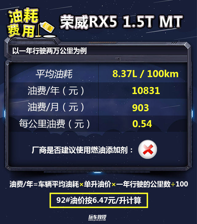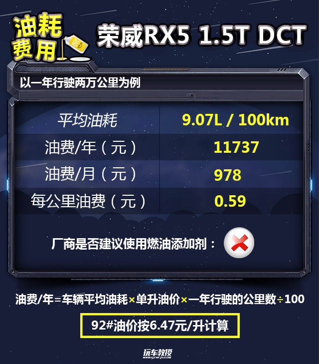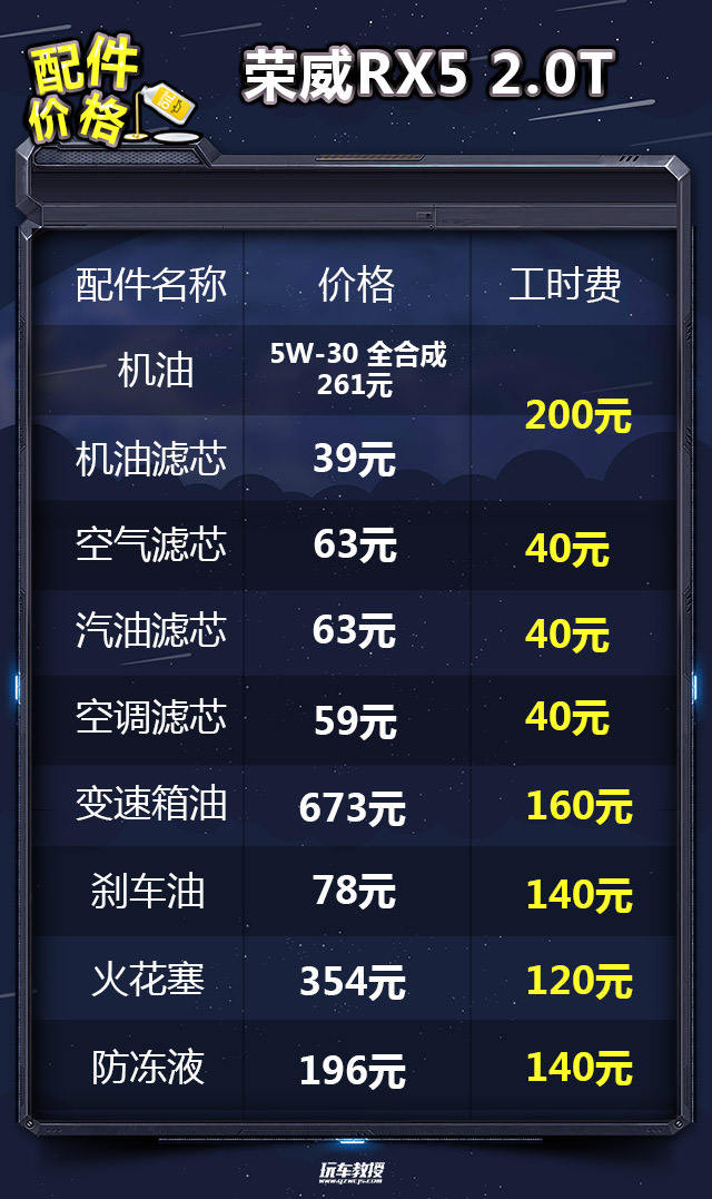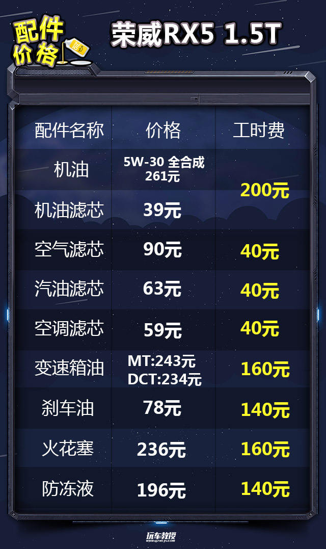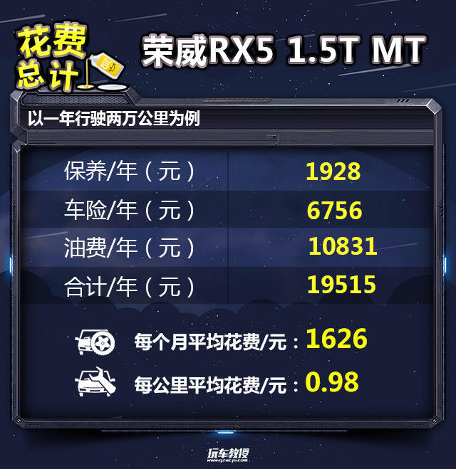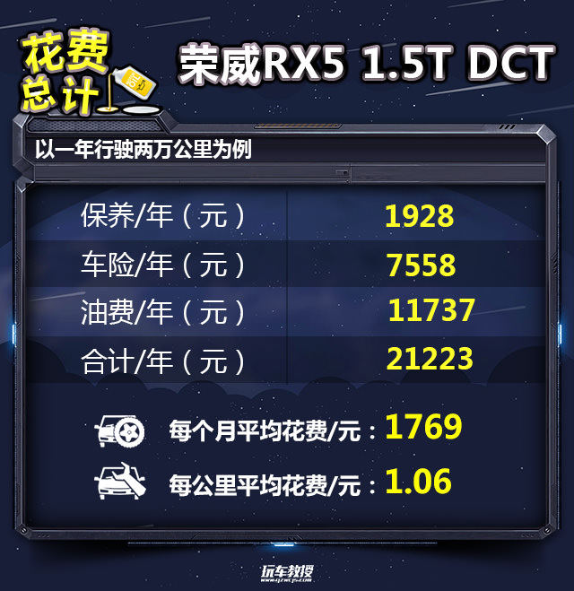 教授总结:保养方面,荣威RX5的小保养价格为500元,1.5T和2.0T车型6.3万公里保养的总费用分别为5785元和6413元,处于同级别中等水平。1.5T手动挡车型年花销为19515元,月花销为1626元;1.5T自动挡车型年花销为21223元,月花销为1769元;2.0T车型年花销为25083元,月花销为2090元。1.5T车型在用车费用上会少很多,更适合节俭的消费者,2.0T车型养车费用处于合理的范围。