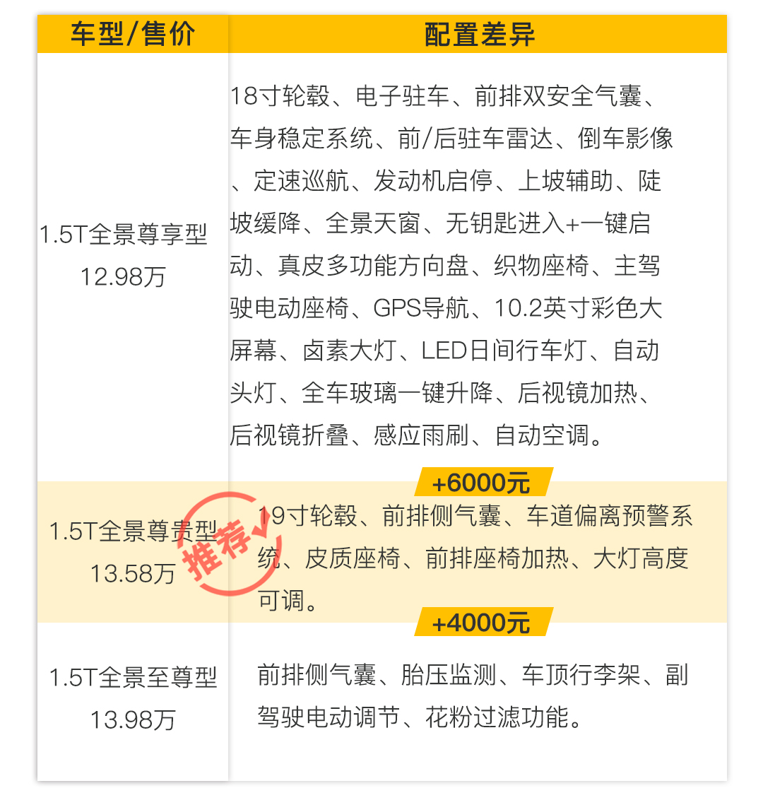 而教授今天也推荐选择中配版本的全景尊贵型,虽然入门版本的尊享型配置已经非常高,但是在部分感官性的配置上依然达不到消费者的要求(仅双安全气囊、织物座椅),而中配版本增加6000元,就能更换更大的轮毂、有皮座椅、全车4安全气囊等,算起来还是相当实惠的,不过可惜的是陆风X7劲越依然全系使用机械助力转向以及卤素大灯。