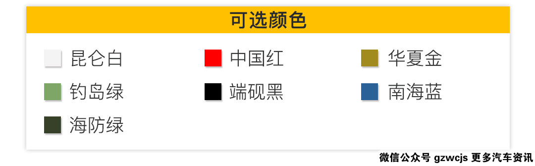 新款陆风X7劲越提供7种颜色选择,不过在颜色的命名上还是别出心裁的,至少看起来很爱国。