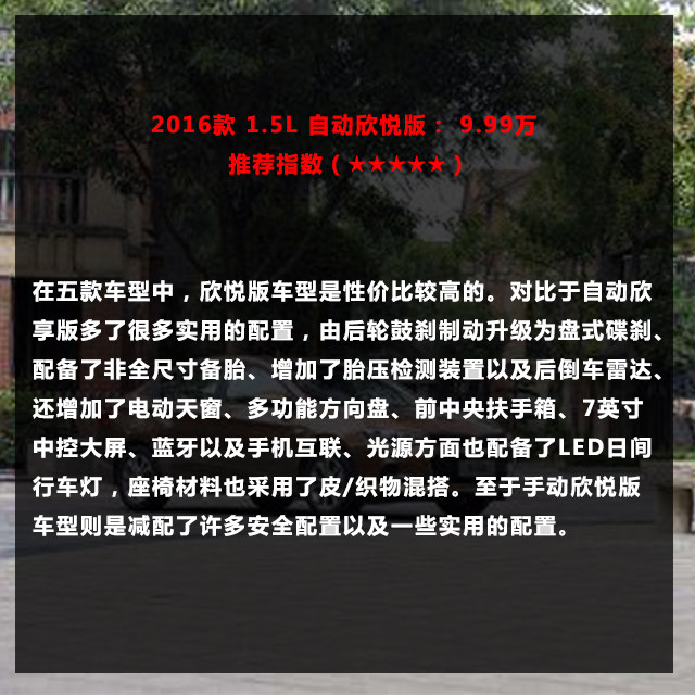 2016款 1.5L 自动欣悦版: 9.99万