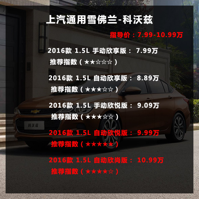 在如今国产品牌以及合资品牌侵占了大半个家用车市场的情况下,想要购买到一款称心如意的家用车似乎已经变得越来越容易了。什么朗逸啊、英朗啦、卡罗拉啦、福睿斯、科鲁兹等等,都是非常不错的选择。可是如果只有10万预算,那这几款车的起步价似乎都略高了,不过不用担心,还有一款定位入门家用的合资车型——科沃兹,除了有着雪佛兰最新的家族式前脸,售价也非常的感人。