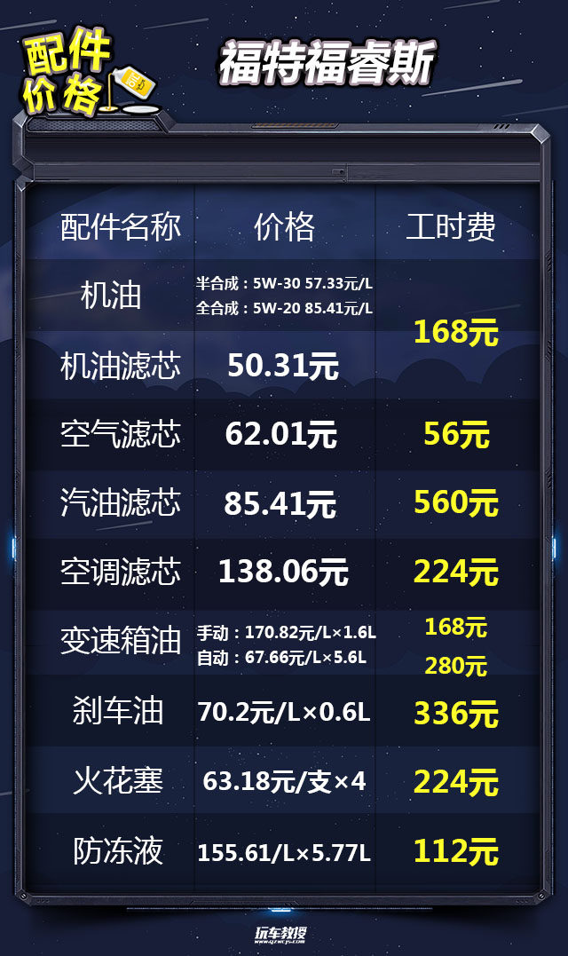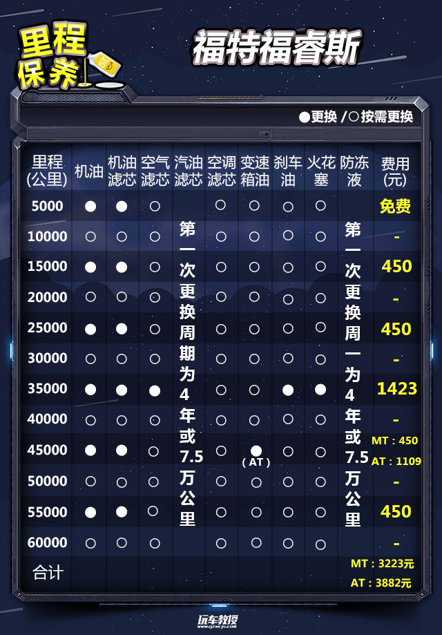 教授总结:福特福睿斯完成一次小保养需要450元,三年6万公里的保养费用:手动挡车型需要3223元;自动挡车型需要3882元。以关注度最高的幸福版 1.5L 自动时尚型为例,一年的保养费用为1294元,使用成本合计为19332元,平均每个月花费1611元。在紧凑型轿车当中,表现中规中矩,消费者可以考虑一下。