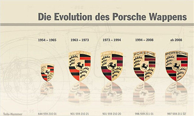 于是从1952年在保时捷356的首次出现,到现在2017年,长达六十多年间,保时捷的车标只经过四次改动,而且没有一次大改,只是对原本的车标修修补补,基本上看不出什么差别。