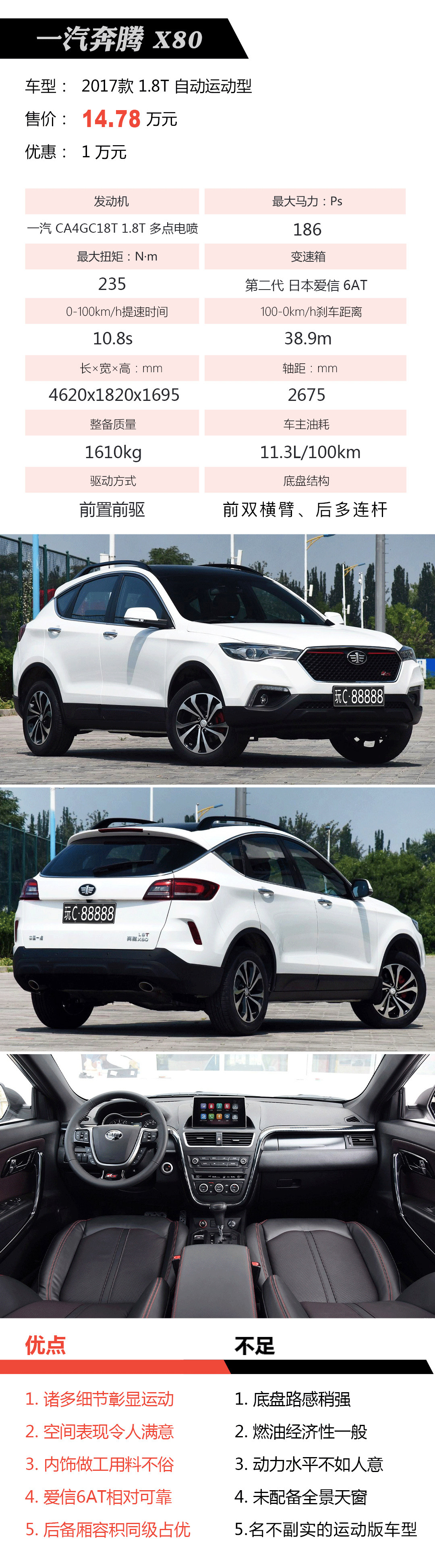 X80运动版并没走上偏科生路线,依旧保持较强综合实力,但定价过高始终让其市场表现不温不火,嗯这很“一汽”。此外,喜人的38.9m刹车成绩得归功于韩泰Dynapro HP2轮胎不俗的抓地力,但10.8s加速成绩与运动头衔相悖