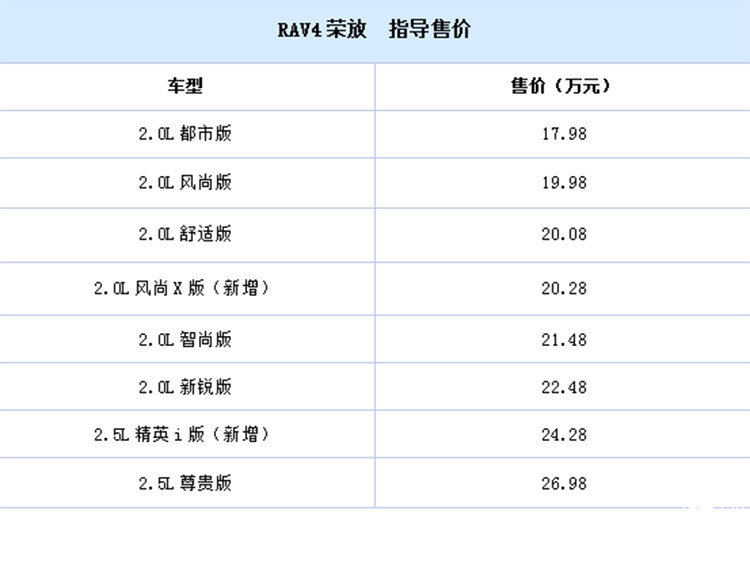 增配置加车型,丰田新RAV4荣放上市