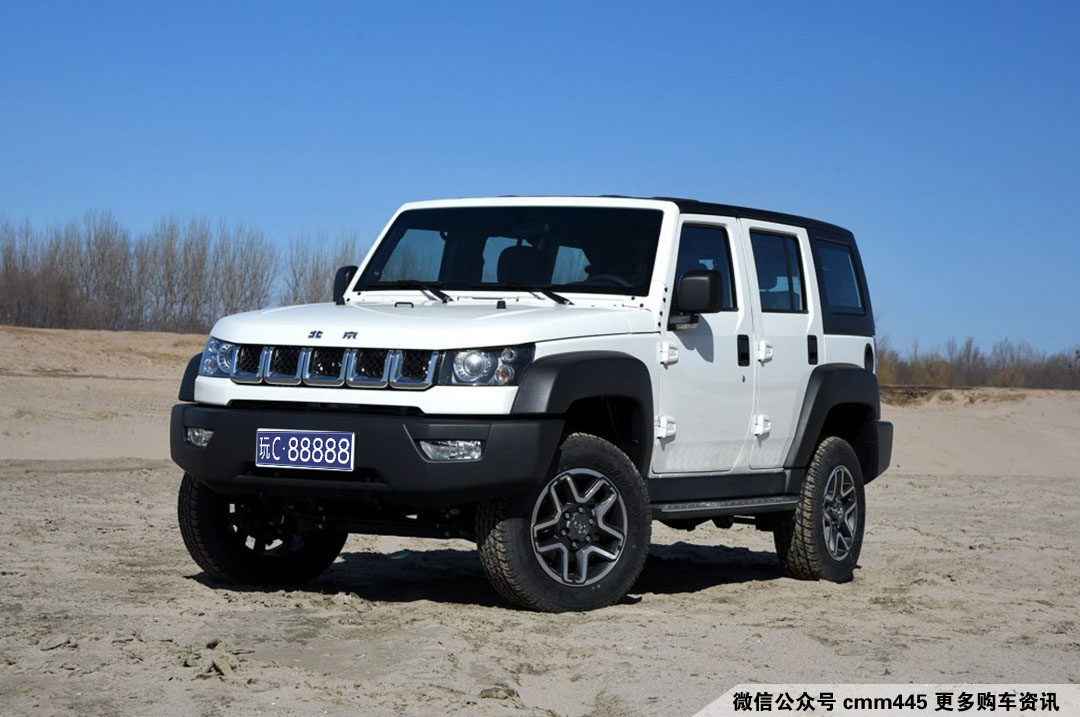北京40使用的是2.0T或者2.3T涡轮增压发动机,可以选择5速手动挡或者是6AT变速箱。短前后悬带来的较大接近角离去角,非承载式车身带来的高车身刚度以及四驱系统的加成,越野对于它来说是家常便饭。值得一提的是它也有类似牧马人一样的三门或者五门设计,以及可拆卸式车顶以及车门。