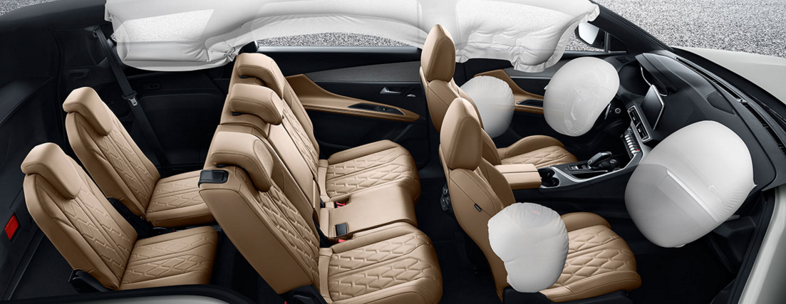此外,标致5008全系标配6安全气囊和胎压监测,6安全气囊由2个前气囊 + 2个前排侧气囊 + 2个贯穿1-3排侧气帘组成,对车内成员保护得比较周到,碰撞后还具备自动切断引擎能源、切换警示灯及车门解锁等瞬间智能安全应对,可以防止二次伤害和方便逃生或救援。