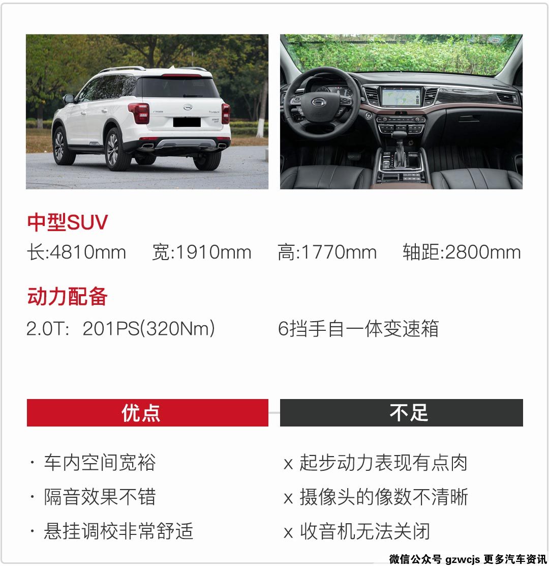 比起前面两款合资车型,传祺GS8另外一个优点就是价格更加低,低配车型售价才16万多一点,所以说购买14万左右家用车的消费者一定也会考虑是否加钱购买。动力方面,全系标配2.0T排量发动机,足以满足日常需求,的确是一款国民好车。