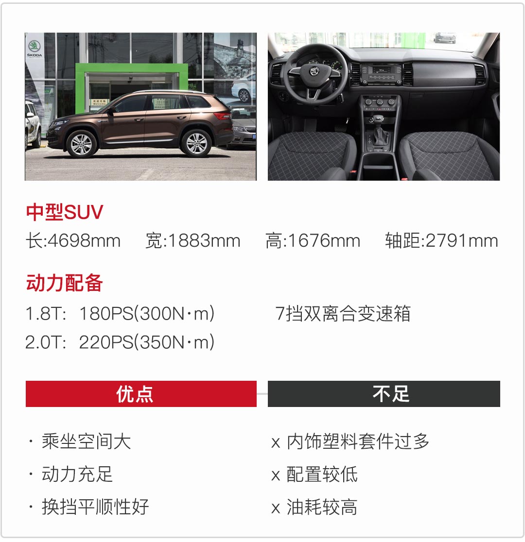 的确如此,作为一直以来价格比大众车型更便宜的斯柯达品牌来说,似乎在国内就表明以价格更低获得更好的销量。如果预算有限选择柯迪亚克的低配车型,在配置方面也是配备上坡辅助、自动驻车、全景天窗、定速巡航,整体来说还算是一款性价比较高的SUV。