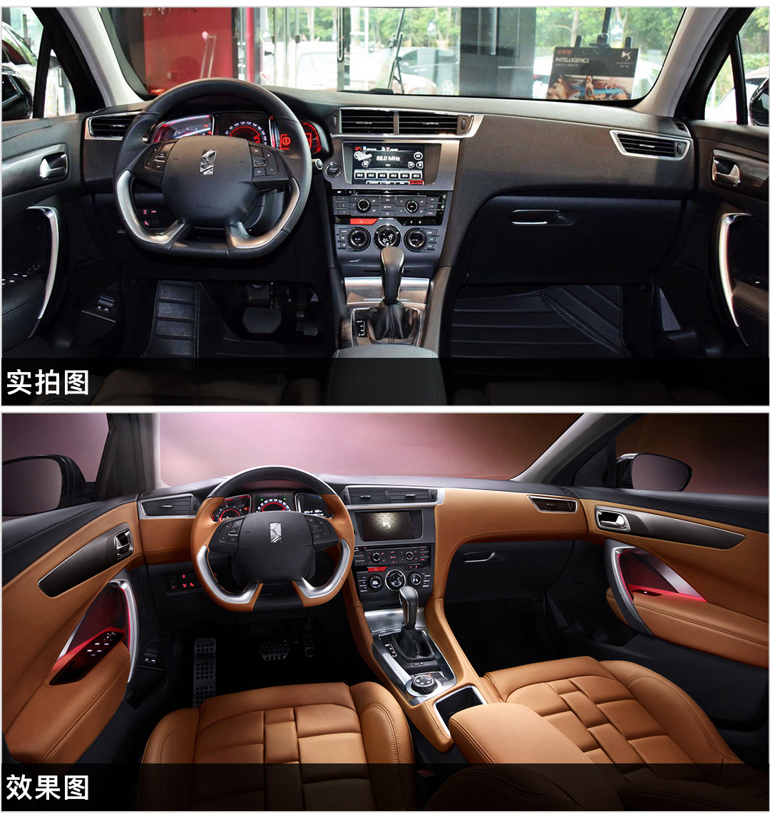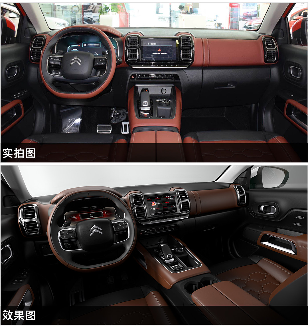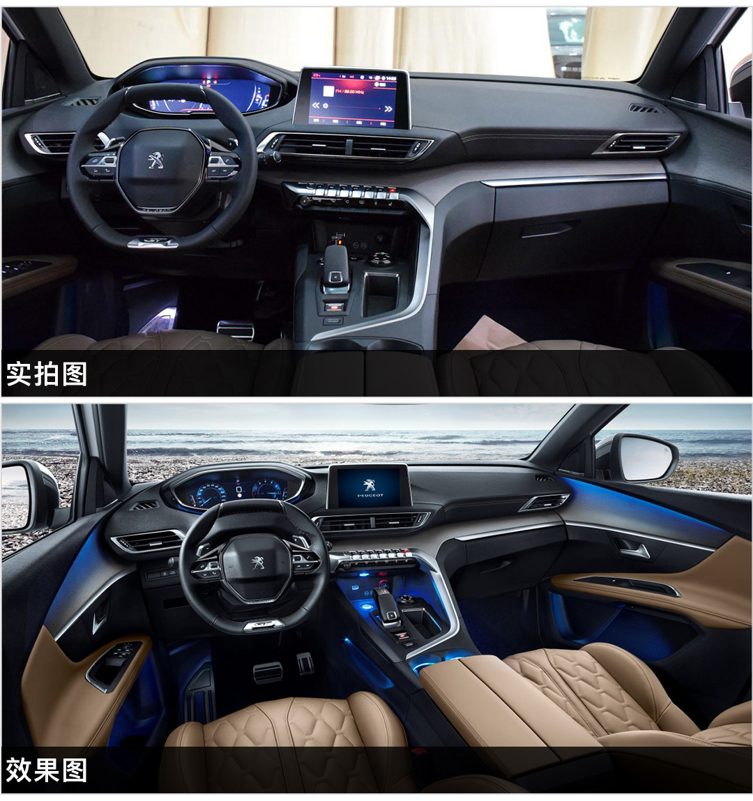整个内饰都采用了圆角矩形设计,空调出风口、全液晶仪表盘都是这样的形状,还有和标致5008一样采用两辐式且上下都是平的方向盘造型,各个地方都采用拼色皮革包裹,挡杆也是电子的,有科技又有豪华的感觉,整体设计风格不像标致5008,但是起码用料厚道高档,看起来也很协调。