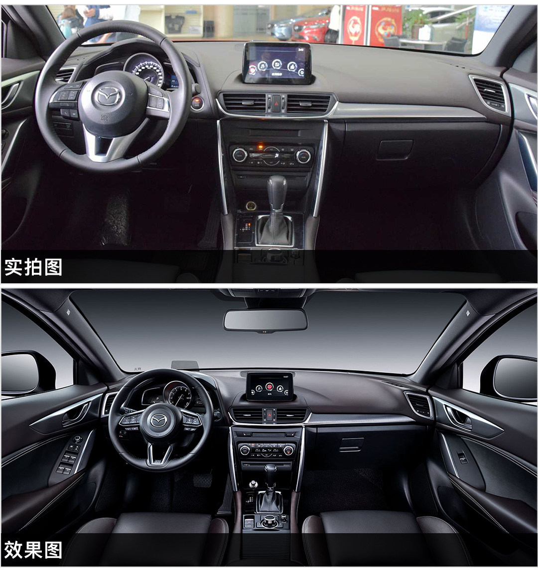 注重操控、运动感的马自达CX-4内饰设计比较简单,并没有什么太大的亮点,只是副驾驶前方用金属/木纹装饰板点缀一下,悬浮式多了一丝科技感。