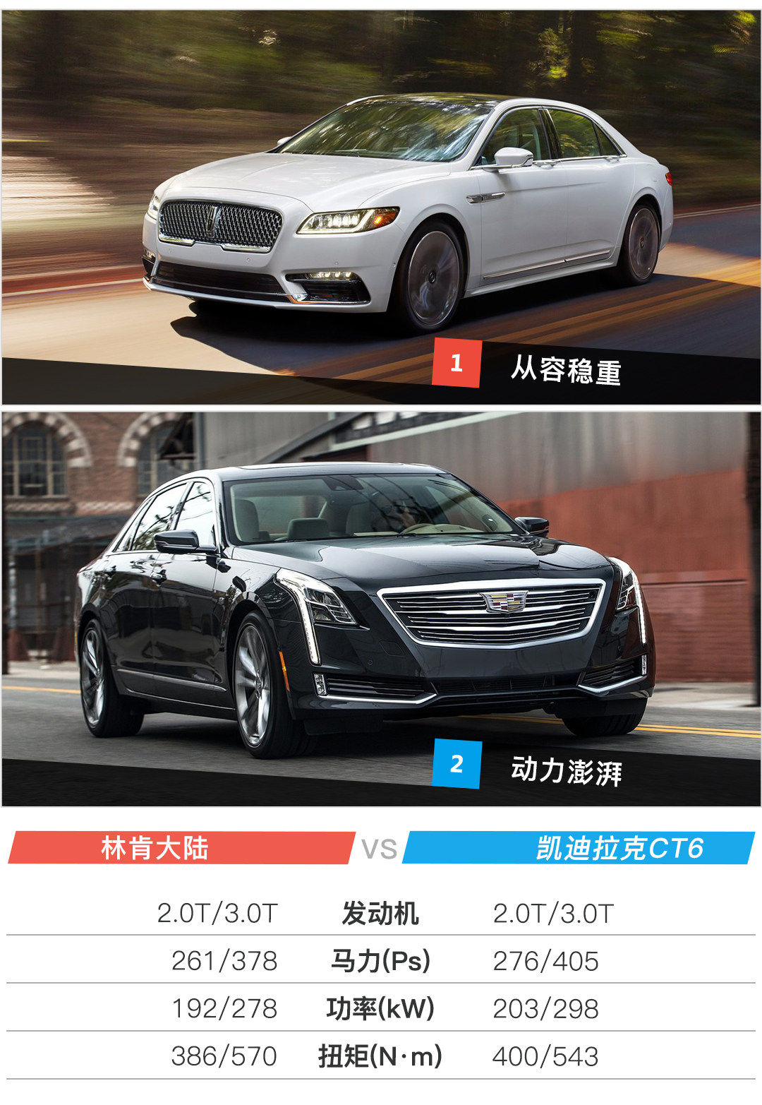 对于中大型车来说,充足的动力和宽敞的空间自然是必须的,还有一个很重要的因素是豪华感,没有足够的气场、豪华感那是不及格怎么对得起四、五十万一笔巨大支出,而论豪华感,除了BBA,美式豪华的典型代表林肯和凯迪拉克也有着不俗的实力,下面教授拿美式中大型豪华车的代表大陆和CT6对比一下。