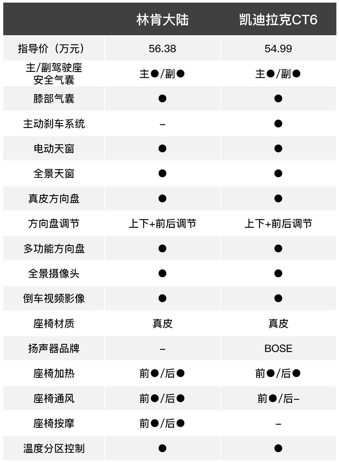 拿50万出头的车型配置做对比,两者配置都不相上下,但是林肯更加注重乘坐舒适性,48万以后的配置均配备前后排座椅按摩,配置也是相当凶啊,而凯迪拉克CT6只有28T和40T动力的顶配才有按摩功能,想坐得享受的老板应该知道选哪款啰。