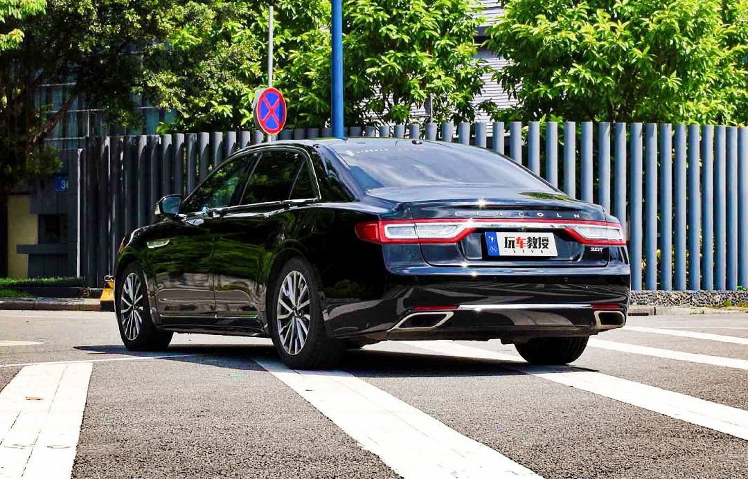 从这个角度看,气场就更强了,可以看到林肯标志性的一体贯穿式LED尾灯,将尾灯与雾灯整合,晚上的视觉效果简直赏心悦目。