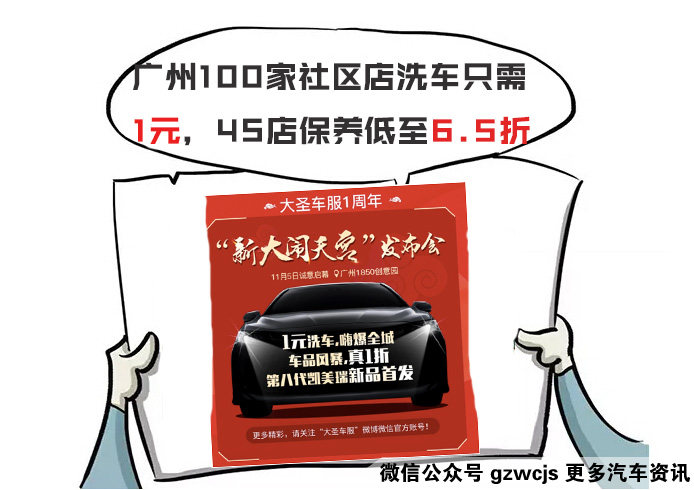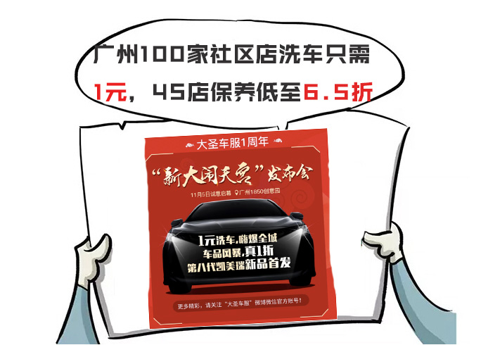 线上优惠活动还满足不了你的话,还有线下的养车活动。如果你是广州地区用户,还可在11月5号至14号,参与大圣车服趣味答题游戏,可获得1元洗车券,随后可到大圣社区店消费。另外,大圣车服还与线下4S店进行了合作。活动期间,消费者只需参与大圣车服活动到指定4S店保养,全单低至6.5折。