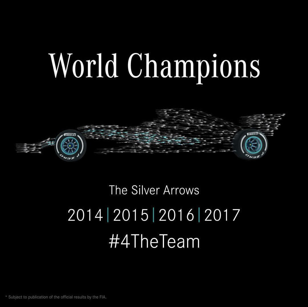 2017年10月30日, Lewis Hamilton提前两站获得了2017赛季的F1车手总冠军,也是他的第四个F1世界冠军,追平了Alain Prost和Sebastian Vettel的纪录。与此同时,梅赛德斯-奔驰也提前获得了连续第四次车队总冠军。除了Lewis Hamilton的过人技术以外,梅赛德斯-奔驰的W08 F1赛车让对手无法比拟的性能,也是再次成就传奇与霸主地位的重要原因。