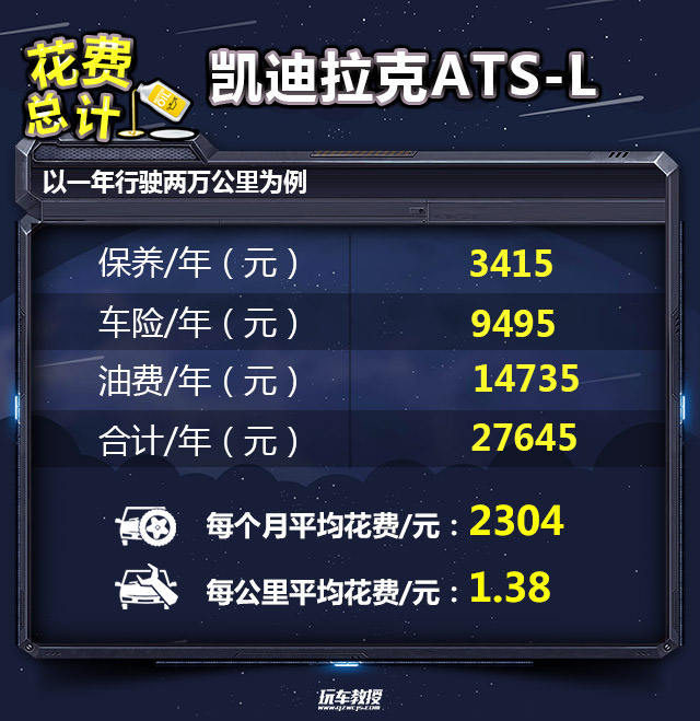 教授总结:从结果上看,凯迪拉克ATS-L的小保养费用为957元,6.5万公里的常规保养总费用为10246元,要比宝马3系和奥迪A4L低。年花销为27645元,月花销为2304元,每公里平均花费1.38元。总得来说,凯迪拉克ATS-L的养车费用在用级别中比较适中,对于大多数消费者来说,压力不算太大。