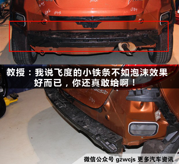 嘉年华后防护杠结构由保险杠外皮以及后防护泡沫组成。泡沫材质为聚乙烯材料。泡沫紧贴白车身尾部,除此之外没有任何防护结构。该防护结构设计风格与日系车型较为相像,美系车还是头一次见到,看来美系也不见得很厚道啊!当然,泡沫也有泡沫的好处,接触面很大,缓冲好,当然还有就是轻。这几句话估计厂家很喜欢听,但作为消费者接不接受你这个做法呢?