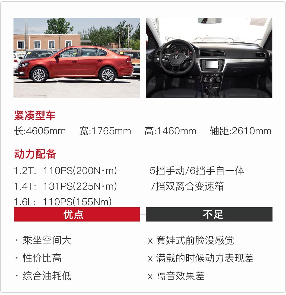 开过大众1.6L排量的车型的人都知道,这个排量对于平常作为城市代步还是够用的,但是需要高速超车的时候,1.6L的排量表现似乎就不够好了。所以更推荐消费者选择带T的两款发动机。