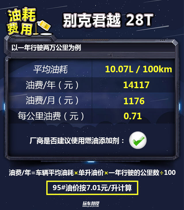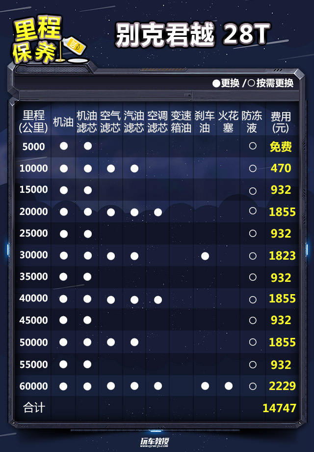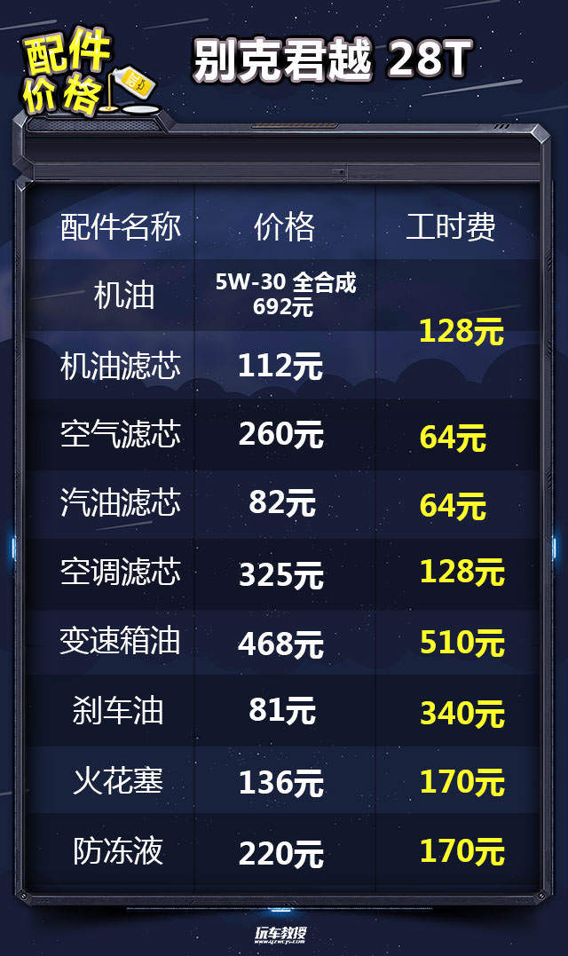 教授总结:别克保养时提供的是全合成机油,而且保养周期规定比较短,所以保养费用会很高。20T车型的小保养价格为815元,28T车型为932元,6万公里的保养总费用为20T车型13530元,28T车型14747元。20T车型保养费用并没有比28T车型便宜多少,两者差距体现在保险和油费方面。20T车型年花费是23807元,月花费是1984元;28T车型年花费是28829元,月花费是2402元。20T车型相比28T车型少花费5000元,如果追求一定的经济性,那不妨考虑1.5T车型。对于2.0T排量的车型来说,君威的28T车型养车费用并不低,但对于一台中高级型车来说,还是一个合理的支出。