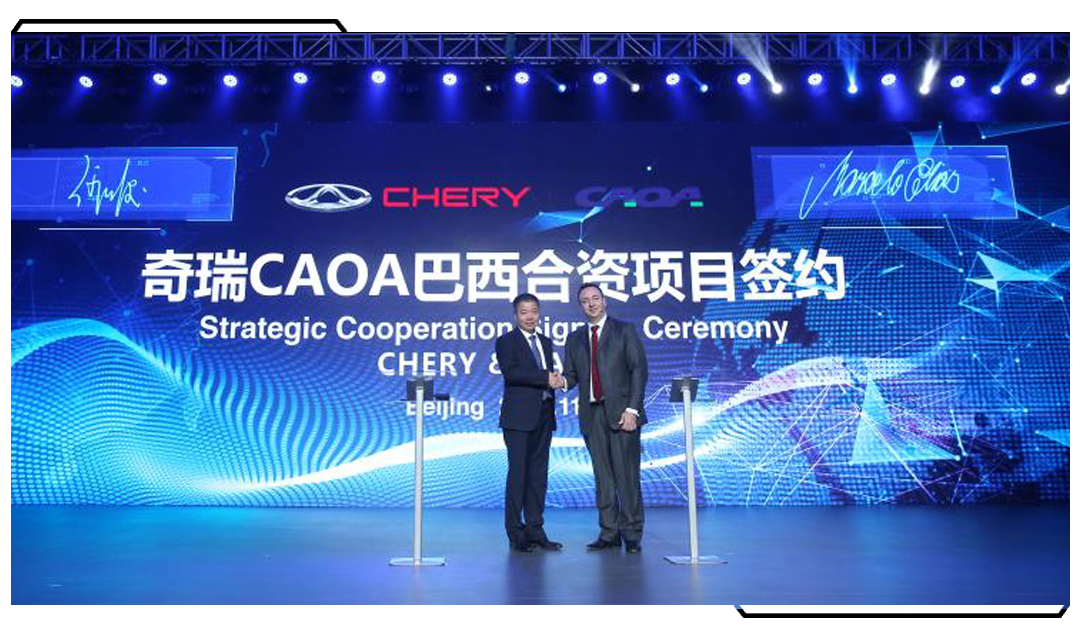 双11当天,在巴西驻华大使Marcos Caramuru De Paiva,阿根廷、乌拉圭等驻华使领馆代表、特邀嘉宾和现场400多家海内外媒体的共同见证下,奇瑞汽车与巴西最大的汽车制造和销售商CAOA集团宣布达成深度战略合作。