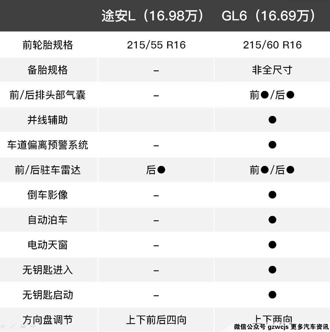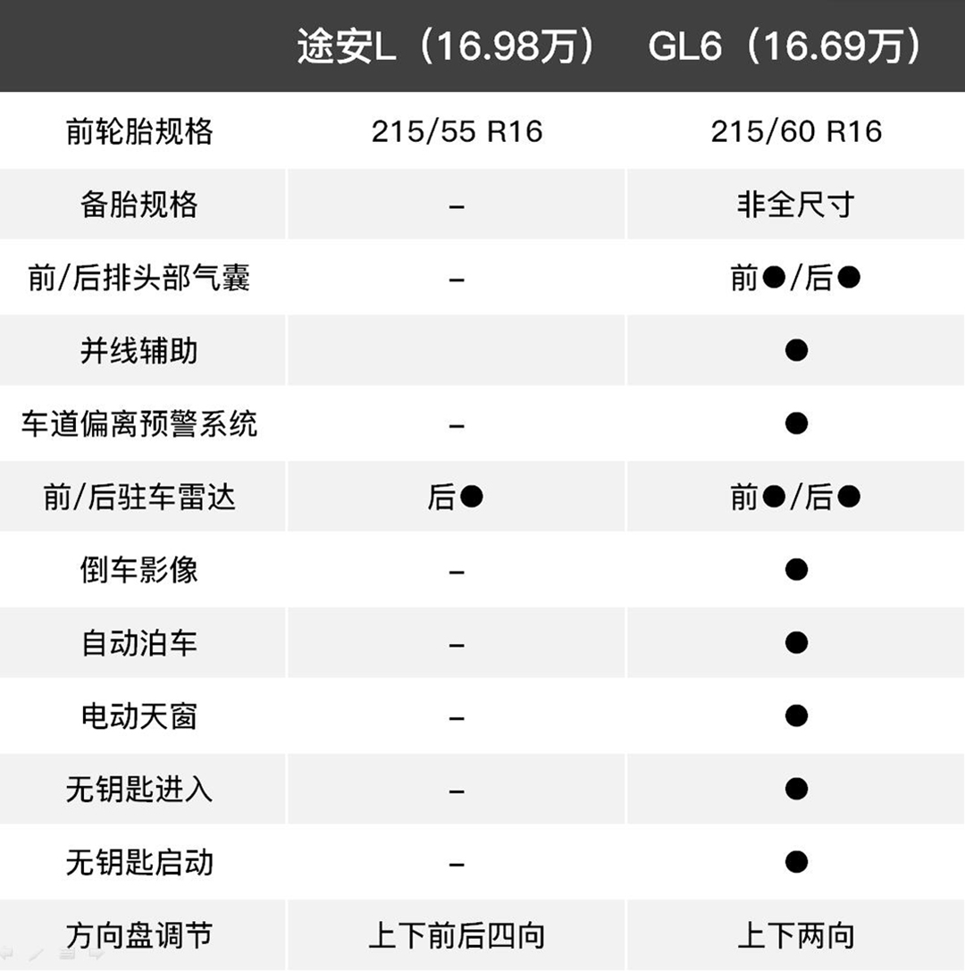 同价位途安和GL6配置对比