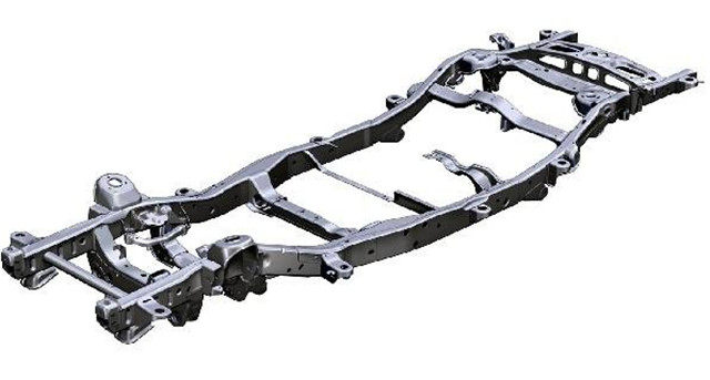 重点就在于非承载式车身的刚性车架,也就是我们俗称的大梁。大梁一般都为梯形或者长方形,放置在车身的最下面,它上面安装着全车的零部件。
