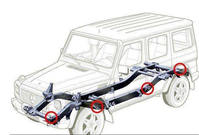 那么这种车身结构的好处在哪儿呢?最大的优点就是强度够高,从图里我们可以看到那个大梁是有多粗壮、结实,能够提供给车身很好的刚性,而且由于车身整个直接安装在大梁上,所以非承载式车身的车一般离地间隙都会比较高。