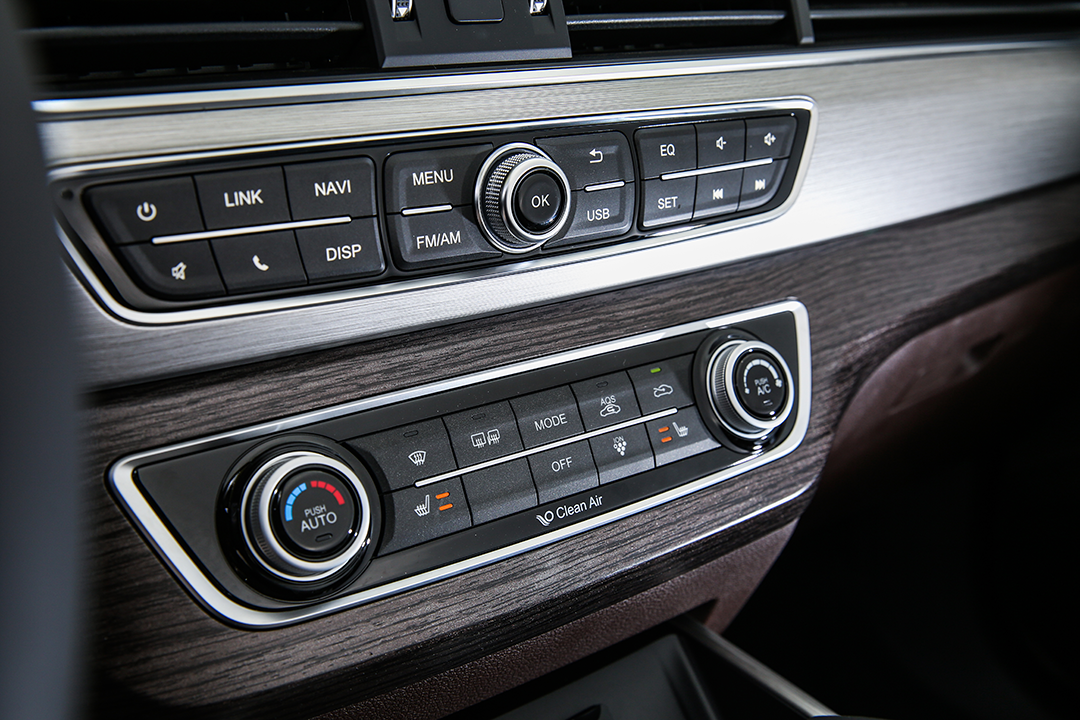 打开车门,教授发现它们的中控台采用多条平行线设计,有效地拉伸了车内的横向视觉空间。并且中控台上方覆盖搪塑工艺的软性材料,下方加以银色拉丝面板以及仿木纹饰板作为点缀,进一步提升了车内的档次感。