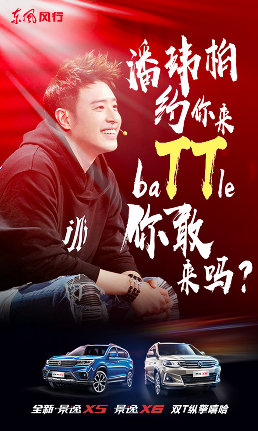 1、东风风行邀请潘玮柏为双车代言,我们知道他是一位兼具颜值与实力的当红歌手,也是诸多80、90后心中的偶像,而景逸“双T”车型的特质与潘玮柏的形象相得益彰,进一步扩展了在年轻消费者中的影响力。