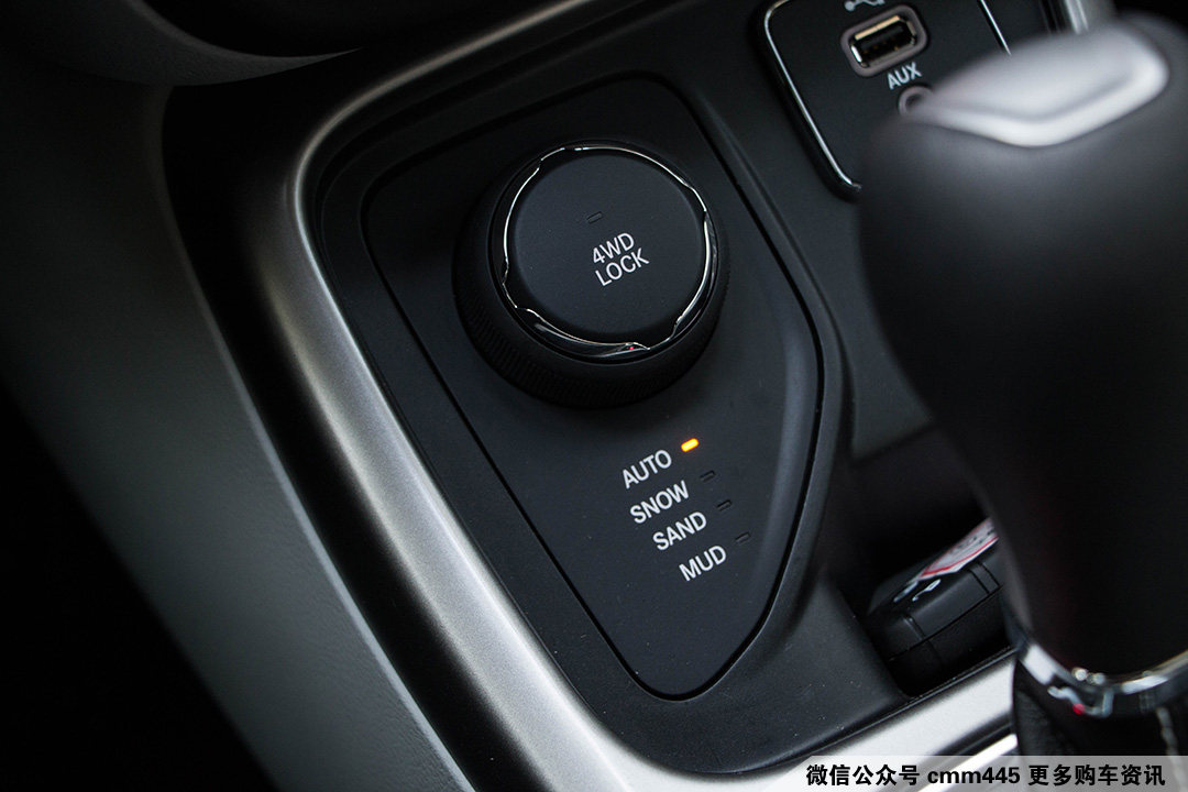 这副四驱系统拥有4种模式:雪地、沙地、泥地,以及自动模式。另外,在这个旋钮里面,它还有低速四驱锁止功能和陡坡缓降功能。