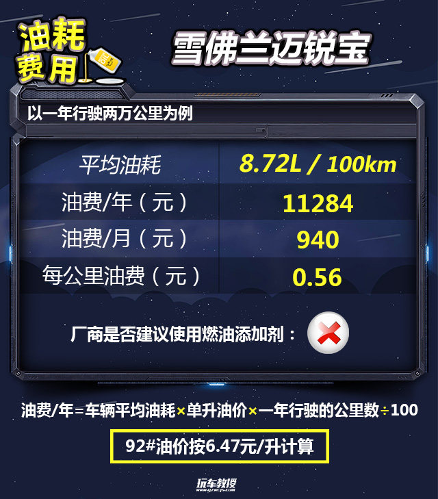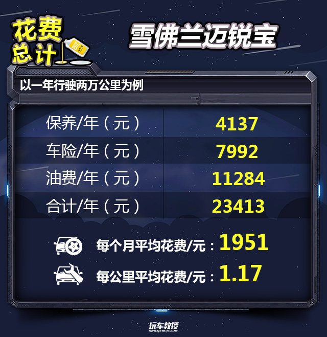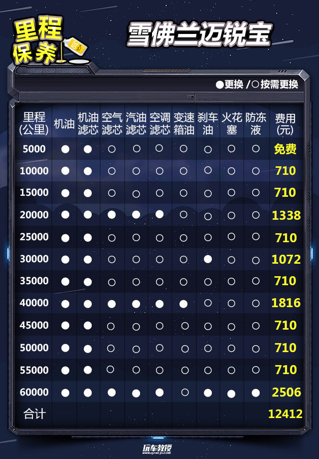 教授总结:雪佛兰迈锐宝完成一次小保养需要710元,三年6万公里的保养费用为12412元。以消费者关注度最高的530T 自动豪华版为例,一年行驶两万公里的保养费用为4137元,一年的用车成本为23413元,平均每月花费1951元。从分析结果来看,雪佛兰迈锐宝的使用成本适中,不算便宜。