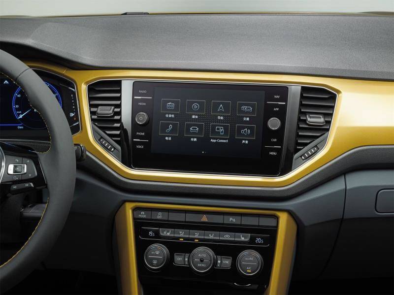 “深金色”令内饰升级。T-ROCSTAR内饰色调与外观相得益彰。仪表盘区域、前门装饰和中控台四周均采用“深金色”设计——不过新车内饰配色采用了哑光设计。运动座椅的椅套和座椅上的装饰缝线、运动方向盘、换挡杆和地垫都采用了这一颜色。此外,整个内饰以动感黑色为主色调。