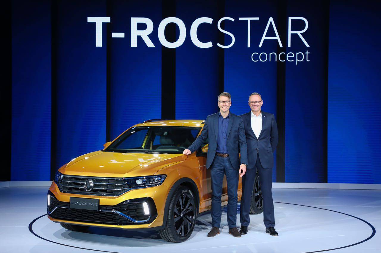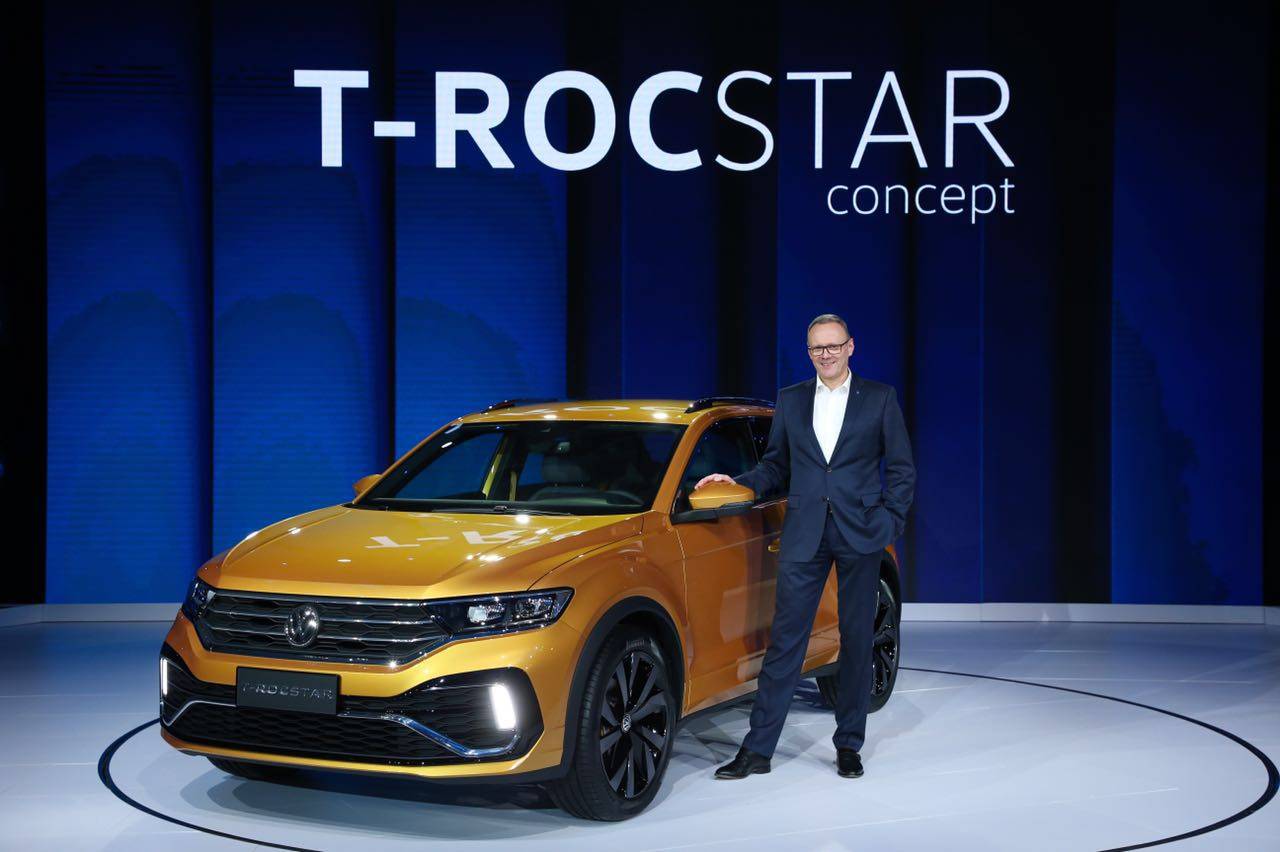 大众汽车品牌中国以全新概念车为都市注入更多活力——T-ROCSTAR概念车于第15届广州车展迎来首秀。大众汽车品牌中国CEO冯思翰博士表示:“T-ROCSTAR展示了大众汽车品牌SUV的新方向:十分动感、年轻、多彩、‘与众不同’和大胆。同时,T-ROCSTAR从设计理念上将今年9月于欧洲发布的T-Roc与将于2018年夏季登陆市场的中国版车型相连接。”
