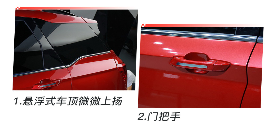侧面看过去,车头的线条比较垂直,轮拱的形状也是比较方正,腰线突出而平直,凸显出力量感,悬浮式车顶,尾部的镀铬线条有意地向上提了一点,车屁股翘起了一点点,多了几分动感,裙边采用黑色包围。