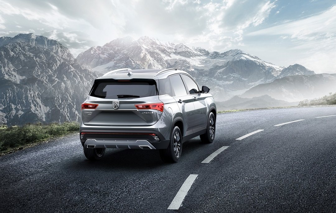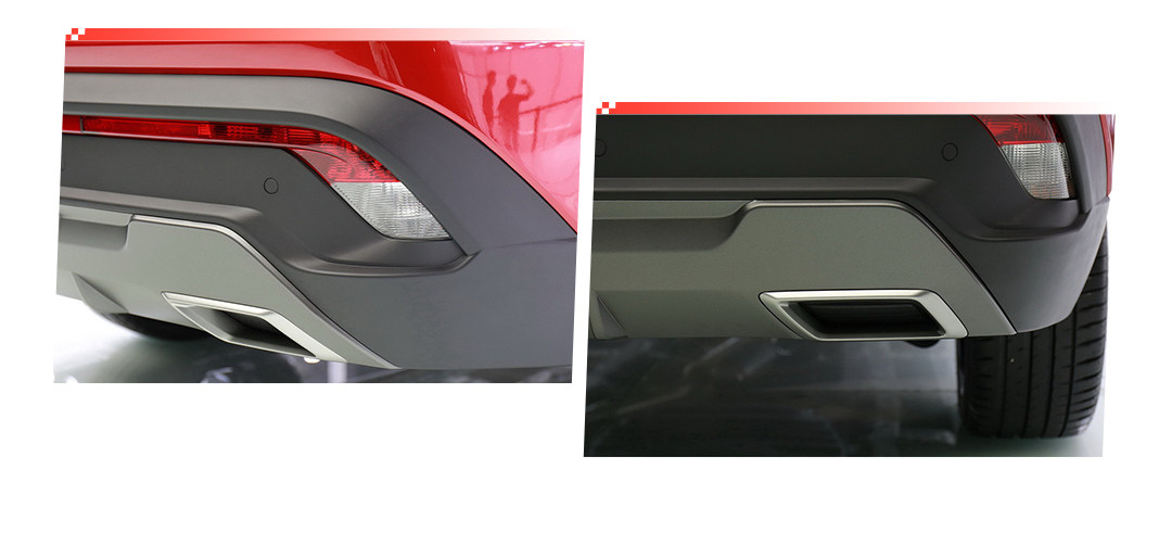 尾部方面,尾灯则是有点窄,与头部的日行灯相呼应,排气是两边共双出,还有银色底盘护板,还有贯穿式的红色反光饰条,尾部设计的整体感觉是比较精致和颇有运动感,与宝骏510不同,相对更大气舒展了。